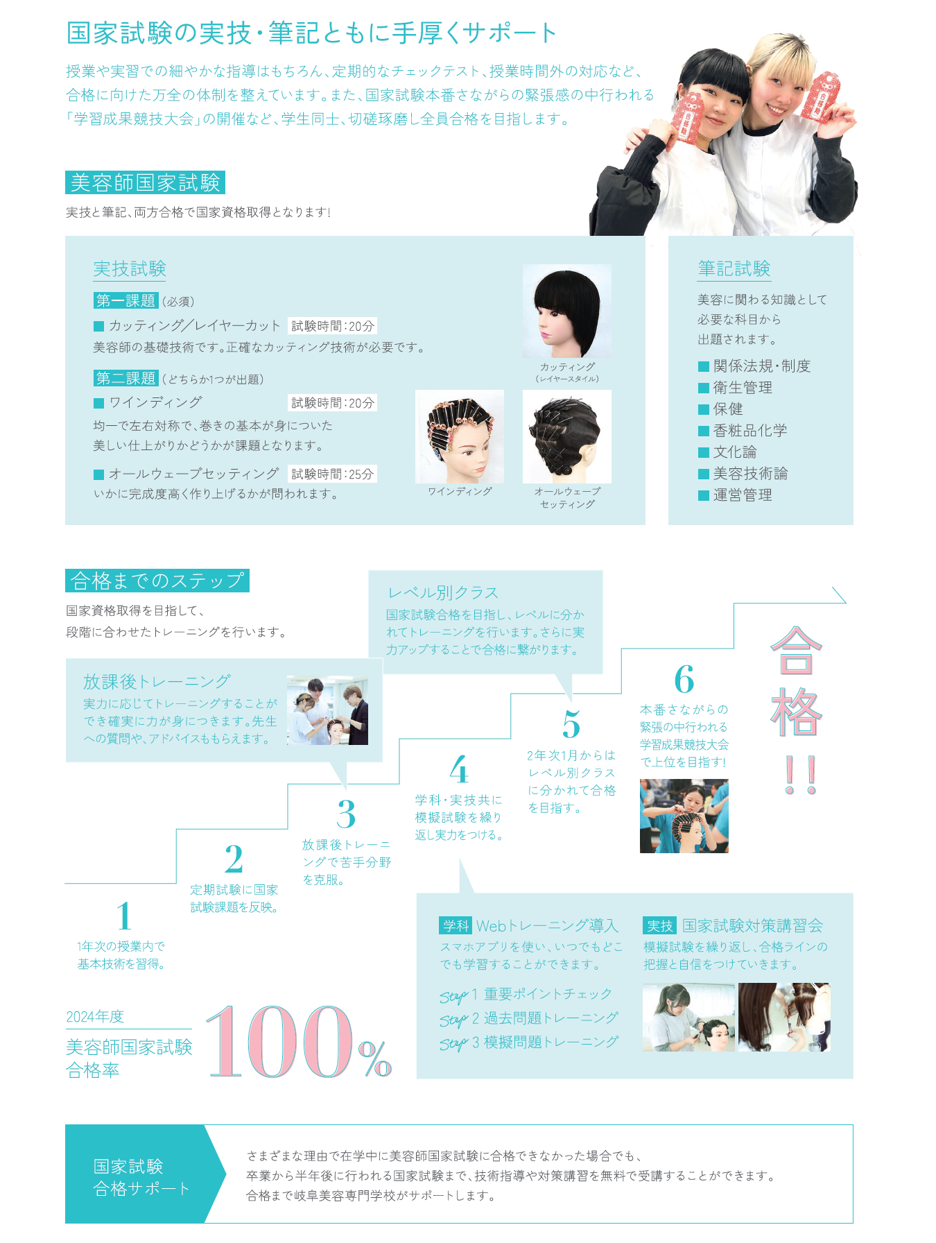 合格まで岐阜美容専門学校がサポートします。